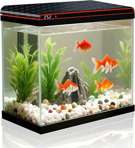 Small Fish Tank, 2 Gallon Glass Aquarium, Betta Fish Shrimp Goldfish Tropical Fish Starter Kit Self Cleaning with Filter & LED Plant Light, Ultra-Quiet Kids Room Decoration Fish Tank