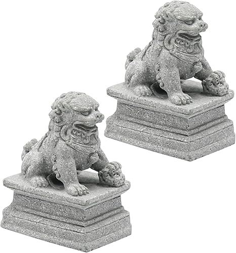 Lively Asian Fu Foo Dogs Statues - Pet Fish Tank Aquarium Ornament, Garden Feng Shui Decoration