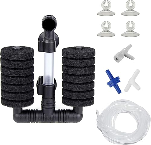AQUANEAT Double Bio Sponge Filter, for Fry, Betta, Shrimp, Nano Aquarium Fish Tank with Airline Tubing, Air Pump Valves, Suction Cups (Small up to 10 Gal)