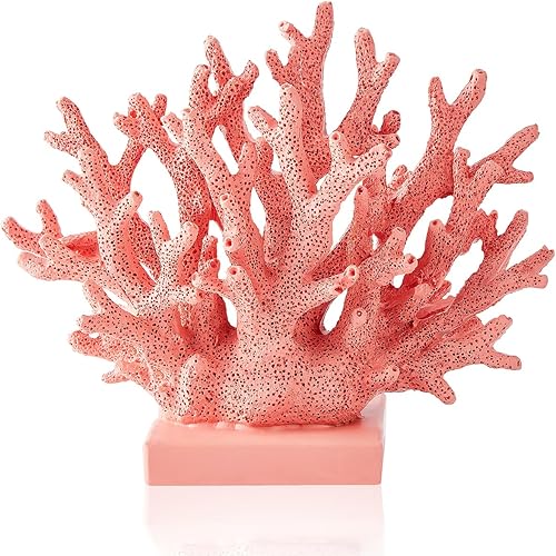 Pink Coral Décor, Nautical Red Coral Reef Decorations for Home, Marine Style Decoration, Ocean Themed Cabinet Shelf Tabletop Decor (Pink)