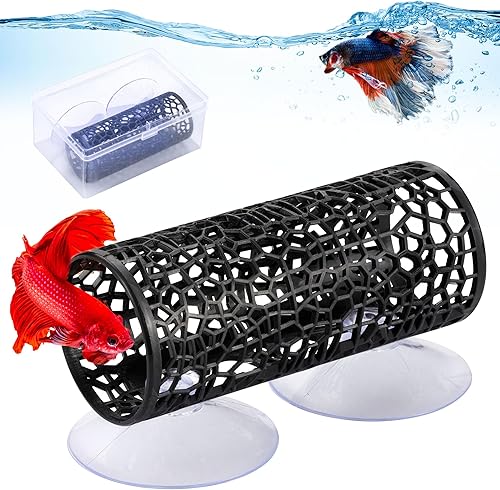 Betta Fish Tunnel, Pink Betta cave with Holes for Fish Tank Decorations, Betta Toys Perfect Shelter Hideaway, Bettas Tank Accessories with Suction Cups for Small Fish Shrimp Habitat