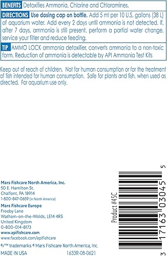 API AMMO-LOCK Freshwater and Saltwater Aquarium Ammonia Detoxifier 4-Ounce Bottle, AMMO LOCK, 4 OZ