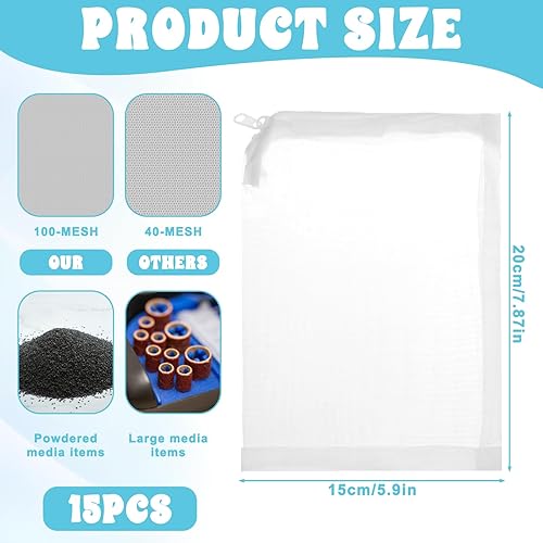 15PCS 5.5 X 8 Inch Aquarium Filter Media Bags, Aquarium Small Filters Bag, Carbon Filters Bag, Reusable Nylon Media Bags with Zipper for Extra Resins Filter