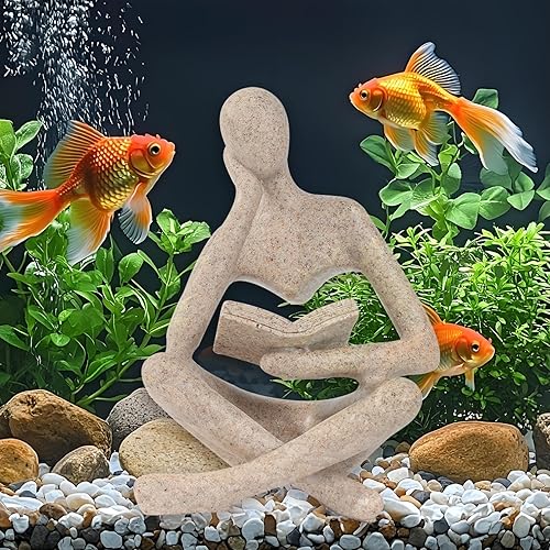 Fish Aquarium Decor Ornaments Minimalist Sandstone Resin Thinker Statue Fish Tank Decorations Small Accessories Abstract Home Decor Fish Toy for Betta Cichlid Goldfish Shrimps Hermit Crabs Turtle