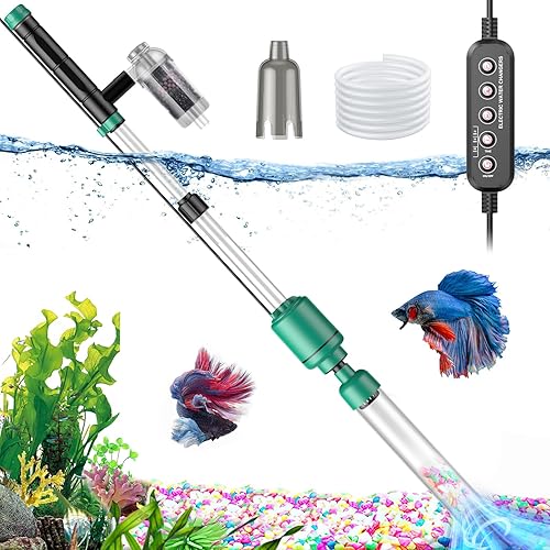 Electric Aquarium Vacuum Gravel Cleaner: 24W Fish Tank Vacuum Gravel Cleaner with Strong Suction for Automatic Water Change Algae Remover Sand Wash Water Shower and Water Circulation, Timed Off