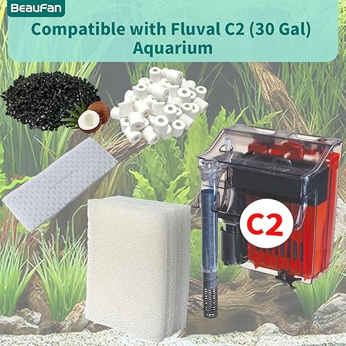 2 Aquarium Filter Media Kits Compatible with Fluval C2 (30 Gal) Aquarium Power Filter, Includes 4 Pack Foam Pads, 4 Pack Tarpaulins, 4 Pack Activated Carbons and 1 Pack Ceramic Ring