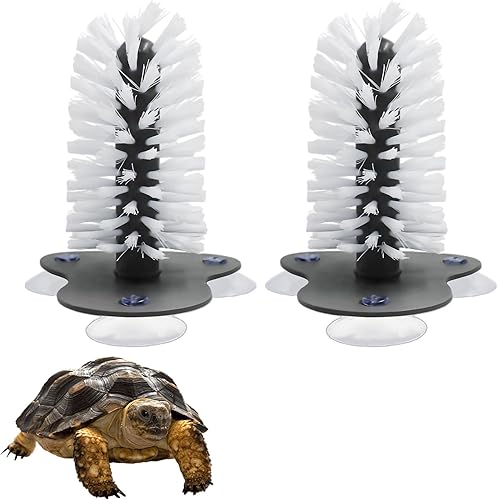 2 Pack Turtle Brush Each with 3 Suction Cups for Tank, Aquatic Turtle Toys and Tortoise Habitat Accessories