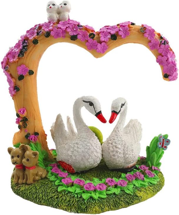 Aquarium Decorations - Resin Heart Swan Aquarium Supplies for Fish Tank Theme Decoration