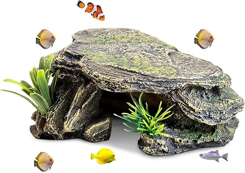 PINVNBY Small Fish Tank Decorations (Size: 5.5 x 2.9 x 2.9 inches), Resin Rock Aquarium Decorations Fish Cave or Reptile Hide to Rest Play Breed, Suitable for Small Betta Humid Gecko Tortoise