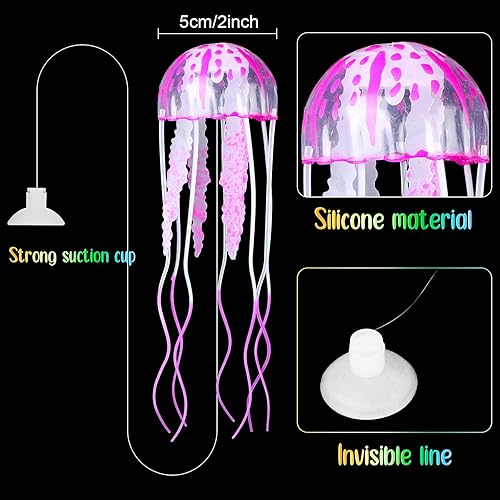 Yinder 17 Pcs Fish Tank Decorations, Include 11 Aquatic Plants and 6 Artificial Jellyfish, Colorful Fish Tank Plastic Plants Accessories for Aquarium Household and Office
