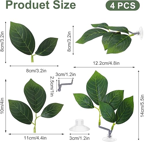 4 pcs Fish Leaf Pad Betta Leaf Hammocks Aquarium Decor Simulating Fish Tank Accessories with Suction Cup for Plastic Plants Natural Habitat Playing Spawn Breed Rest Bed