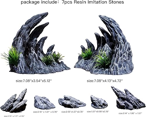 “Soul Valley” Aquarium Ornaments Aquarium Decoration Model Kits, Include 7 pcs Resin Imitation Stone