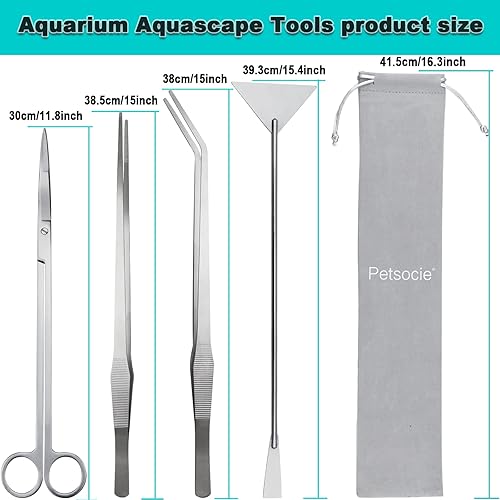 Aquarium Aquascape Tools Kit, Long 15 Inch Stainless Steel Aquatic Plants Tools, 4 in 1 Anti-Rust Aquascaping Tweezers Scissors Spatula Scrapers Tool Set for Fish Tank Cleaning Plant Trimming Shears