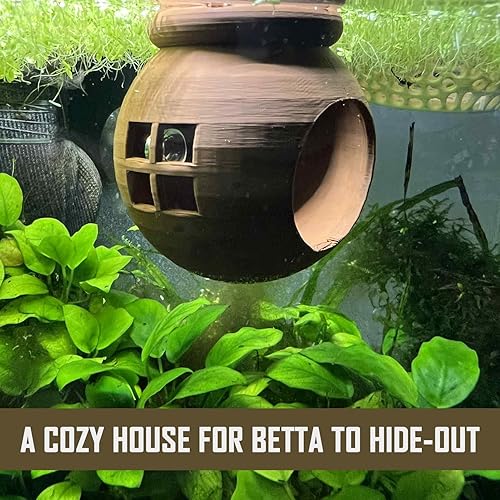 Floating Cozy Betta House, Natural Floating Betta Hide Out, Aquarium Hammock, Relaxing & Stress Relief, Suction Cup Included, 2.9" W x 2.6" H