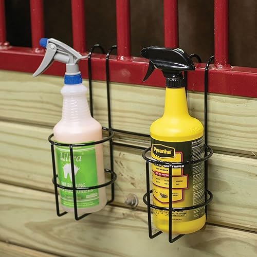 EASY-UP Double Spray Bottle Holder | Portable Organizer for Horse Barns & Stalls | Holds 2 Standard 32oz Bottles | Mounts on Fences, Doors & Gates | Durable Carbon Steel Design | Color Black