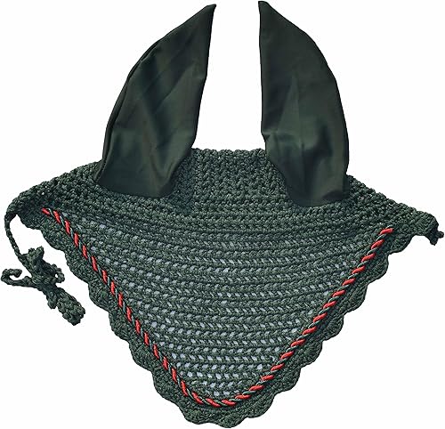 Elegant Horse Ear Bonnet, Fly Veil & Fly Mask – Superior Fly Protection with Style and Comfort for Every Ride (Dark Green, Horse/Full)