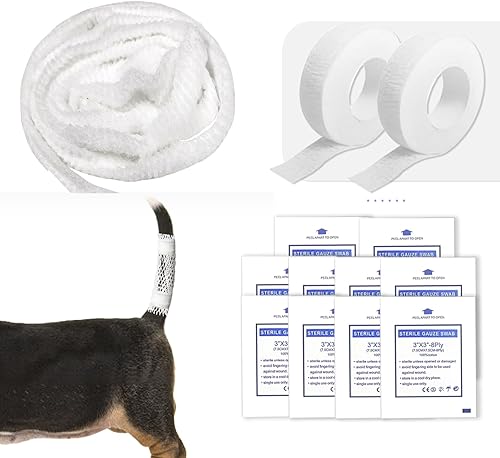 13 Pcs Dog Tail Protector Bandage Set - Sterile Vet Wrap Gauze, Breathable Mesh Tail Dressing and Self-Adhesive Pet Bandage for Wound Care. Happy Dog Paw Nail Bandages, Paw Wounds for Pet Animals