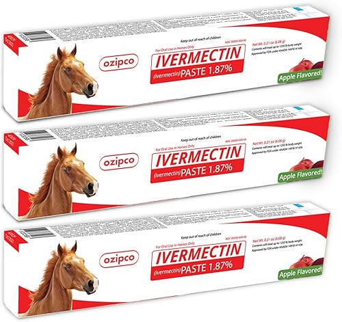 Ivermectin 1.87% Horse Paste – Apple Flavor 6.08g Tube - Deal for Horses Up to 1250 lbs (Pack - 3)