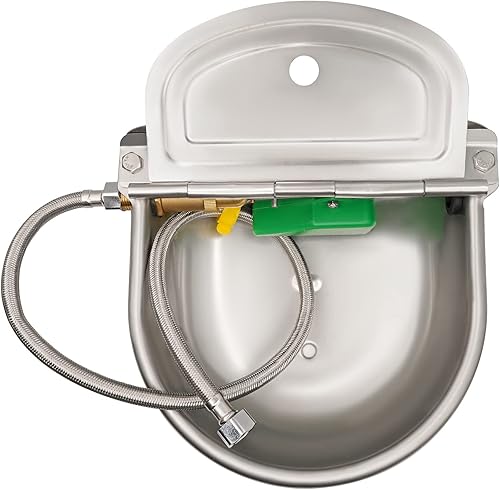 Automatic Water Bowl with Brass Float Valve, Drain Hole and Hose, Stainless Steel Dog Water Bowl Livestock Waterer for Cattle Pig Goat Dog