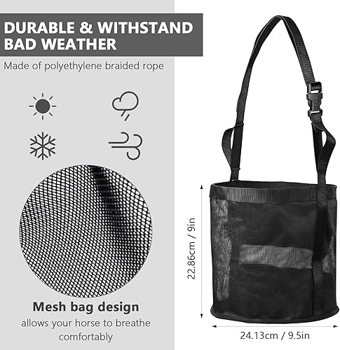 2 Pcs Horse Feed Bag Comfort Breathable Mesh Feed Bucket Heavy Duty Feed Bag with Adjustable Strap and Waterproof Bottom for Horse Feeding Supplies Muzzle Feed Bag, Medium (Black)