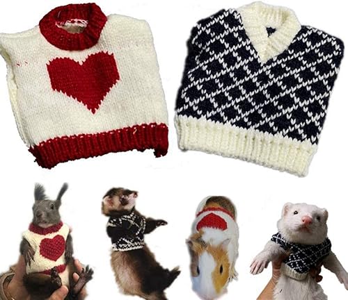 2 PCS Ferret Clothes Small Animal Sweater Warm Winter Vest Knitted Sweatershirt Ferret Apparel Accessory Halloween Party Cosplay Photo Shoot for Ferret Bunny Guinea Pig Squirrel