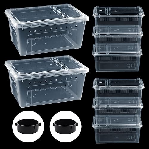 8 Pcs Reptile Feeding Box Snake Plastic Transparent Breeding Box for Bearded Gecko Dragon Lizard Spider Frog Scorpion (2 Pcs Large Size, 6 Pcs Small Size)