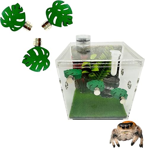 6 Pcs Jumping Spider Accessories Set - Jumping Spider Habitat with Hemp Rope, Jumping Spider Leaf-Shaped Ledges, 2PcsJumping Spider Web for Jumping Spider Enclosure