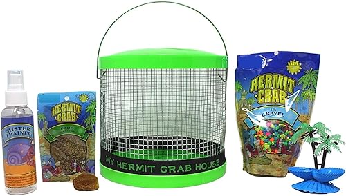 Needzo DIY Terrarium Kit, Medium Hermit Crab Starter Pack with Wire Cage, Palm Tree Water Holder, Sponge, Bag of Food, Gravel, and Misting Water Bottle, All in One Pet Supplies, 7 Inches