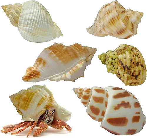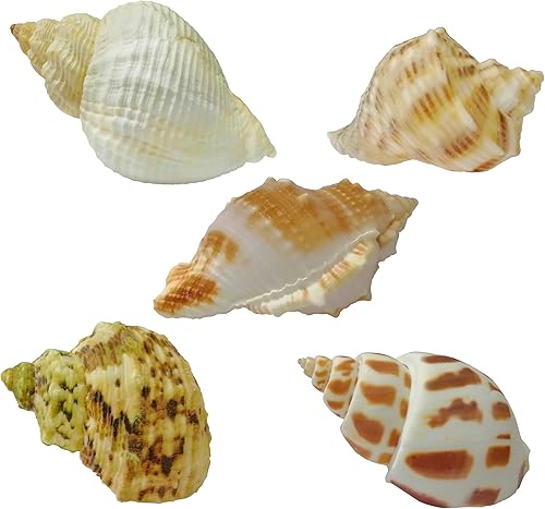 Natural Hermit Crab Shells Set – 5 Assorted Sizes (1" - 1.4" Openings) Growth Turbo Shells, Eco-Friendly, Decorative & Functional Shells for Crab Tank Decoration & Shell Selection