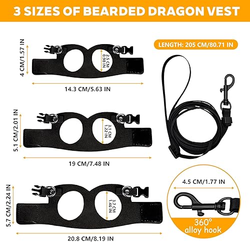 3PCS Bearded Dragon Harness and Leash Set,Adjustable Leather Vest and Retractable Nylon Leash,for Reptile,Lizard Leash,Squirrel Harness,Small Animal Traction Rope