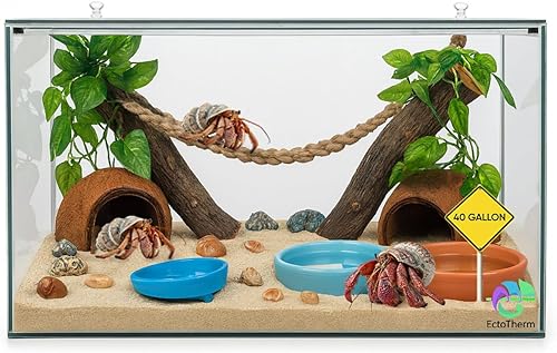 EctoTherm Hermit Crab Tank - 10 Gallon Tank with Lid - Complete Hermit Crab Cage for Large & Small Crabs - Glass Tank