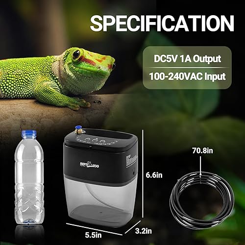 REPTI ZOO 800ml Reptile Mister Fogger Portable Mister for Reptile Tank Reptile Enclosure Misting System Terrarium Mister with 2PCS Nozzles for Reptiles/Amphibians, Black