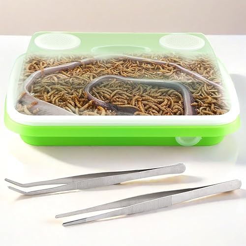1 Pack Mealworms Breeding Kit Mealworms Keeper with 2 Pcs Insect Stainless Steel Tweezers to Breed Live Worms for Reptile Bearded Dragon Leopard Gecko Lizard Frog Bird Chicken