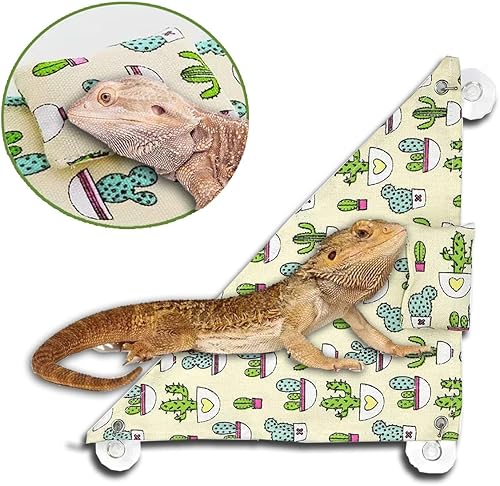 Bearded Dragon Hammock with Pillow, Swing Hanging Reptile Bed Lounger, Reptile Cover Substrate Tank Accessorie with Suction for Axolotl Bearded Dragon Geckos Lizard Terrariums Accessories