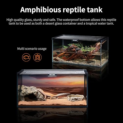 Reptile Terrarium 4.5 Gallon Glass Reptile Tank 16"x7.8"x7" with Top Screen Ventilation,Hide Cave,Water Bowl for Bearded Dragon,Lizard,Spider,Hamster,Hermit Crab, Turtle Tortoise