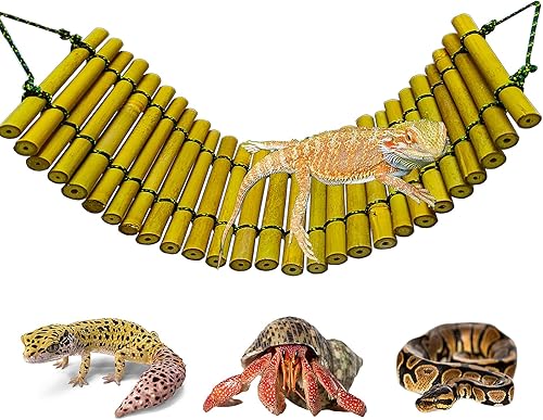 Bearded Dragon Tank Accessories, Reptile Climbing Hammock Bridge, Lizard Lounger Bamboo Ladder, Reptile Tank Accessories for Habitat, 12 x6 in