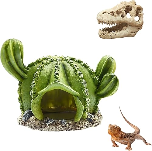 Reptile hideouts Come with Dinosaur Skull Hideout, Resin Cactus Desert Aquarium Tank Habitat Accessories for Bearded Dragon Chameleon Leopard Gecko Snake Fish (Ball Cactus)