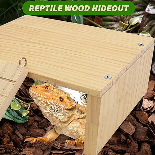 FlidRunest Reptiles Hide, Bearded Dragon Hide Cave with Ladder, Gecko Basking Platform for Tank, Wooden Accessories for Bearded Dragon Lizard Geckos Hamster