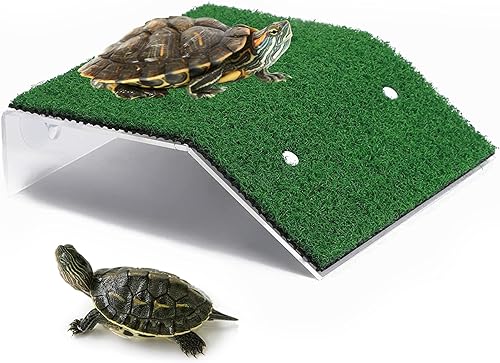 Turtle Basking Platform - 4.6 X 2.8 X 1.3 Inches Tortoise Basking Platform - Simulation Grass Tortoise Ramp with Suction Cup - Turtle Resting Terrace for Reptile, Terrapin, Frog