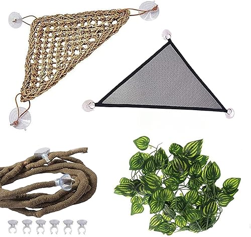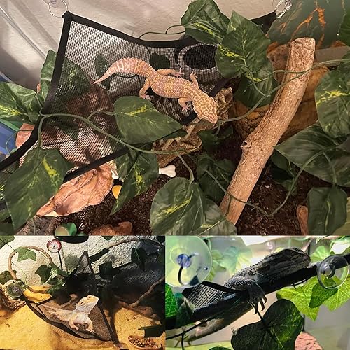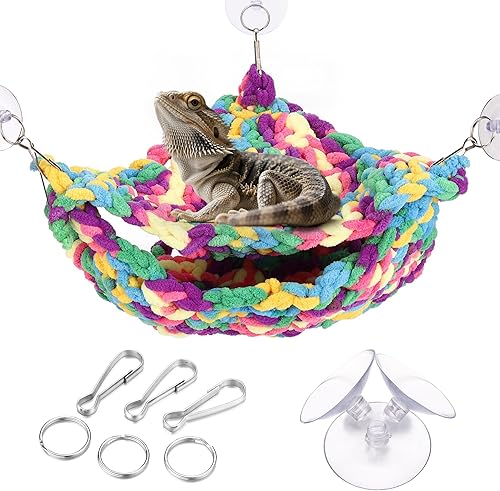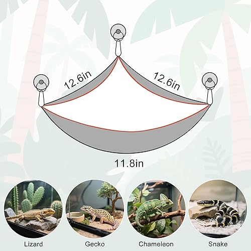 Soft Reptile Hammock, Double-Layered Bearded Dragon Tank Hammock Swing Hanging Bed with 3 Strong Suction Cups & Hooks, for Lizard Leopard Gecko Chameleon Small Reptiles, Handwoven, Triangular