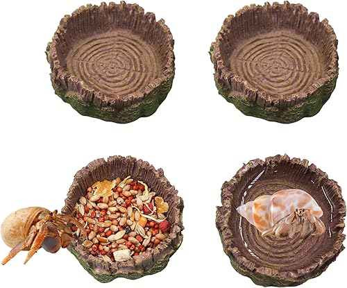 4 Pack Hermit Crab Water Dish Food Bowl, Resin Tree Trunk Reptile Feeding Bowls, Tank Aquarium Accessories for Bearded Dragon Leopard Gecko Lizard Tortoise Snail Toad Frog - 2.75 Inch in Diameter