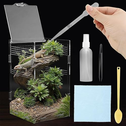 Jumping Spider Enclosure Kit - Dual Sliding Door Acrylic Terrarium with Accessories, for Spiders, Mantis, Tarantulas, Snails, Lizards, and Small Reptiles | Easy Access & Maintenance for Pet Owners