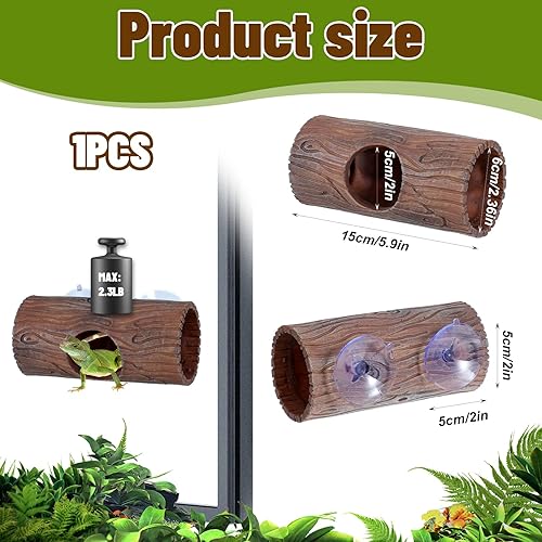 Plastic Hollow Hideout with 2Pcs Powerful Suction Cup, Reptile Hide, Reptile Tank Accessories for Bearded Dragons, Crested Geckos, Frogs, Hermit Crabs, Lizards & Snakes, Terrarium Decor