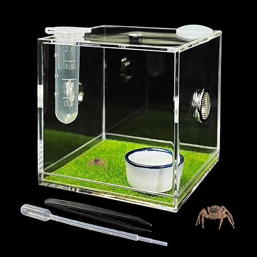 GKPONSX Acrylic Jumping Spider Enclosure, Spider Terrarium Accessories with Bowls Tongs Dropper for Snail Tarantula Scorpion Praying Mantis Isopods Insects