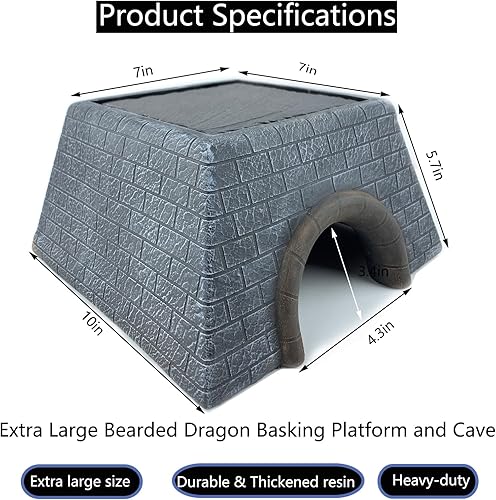 Large Bearded Dragon Basking Platform Oversize Reptile Hide Cave Natural Rock Resin Lizard Hideout for Bearded Dragon Lizards Ball Python Snakes Turtle Large Reptiles