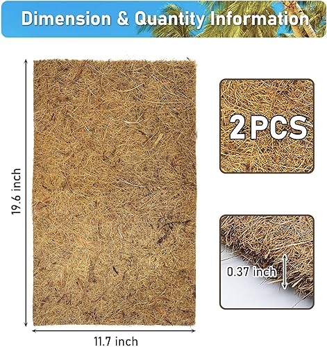 PIVBY 2 PCS Reptile Carpet, Natural Coco Coir Mat (19.6" x 11.7"), Coconut Fiber Substrate Pet Terrarium Liner for Bearded Dragon Tortoise Habitat Lizards Turtles Snakes Iguana Hermit Crab
