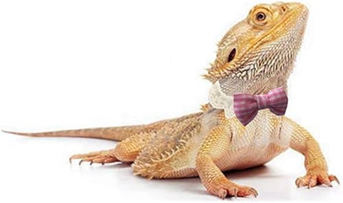 Lizard Bearded Dragons Stretchy Pink White Plaid Bowtie with Elastic Lace Decor Handmade Bowknot Collar Bandanas Costume Reptile Apparel Photo Gift Lizard Clothes Accessories for Bearded Dragon