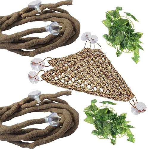PINVNBY Bearded Dragon Hammock Jungle Climber Vines Flexible Reptile Leaves with Suction Cups Habitat Decor for Climbing, Chameleon, Lizards, Gecko, and Snakes(6 PCS)
