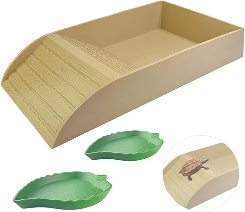 3 PCS Tortoise Food Dish with Ramp and Tortoise Water Bowl,Gray Reptile Water Bowl,Reptile Water Dish Amphibians Habitat,Reptile Water Bowl for Turtles,Horned Frogs and Lizards