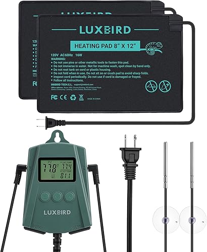 Luxbird Reptile Heating Pad 8x12 Inch with Dual Output Reptile Thermostat LB-2SC Combo Set Under Tank Terrarium Heating Mat for Turtles, Lizards, Frogs, and Other Reptiles